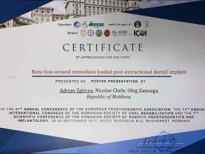 Participă în mod constant la diferite seminare și forumuri științifice naționale și internaționale, pentru a fi la curent cu toate noutățile din domeniul stomatologiei, și din 2017 a devenit membru al Asociației Europene de Osteointegrare EAO.
